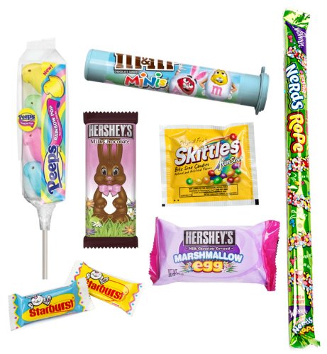 - What kid doesn't want candy for Easter? Especially: Rainbow Pop Marshmallow Chicks, Milk Chocolate Mini M&M's, Hersey's Milk Chocolate Easter Bunny, Hersey's Milk Chocolate Covered Marshmallow Egg, Nerds Rope, Fun Size Skittles Pack, and 2 Starburst Mini Packs!